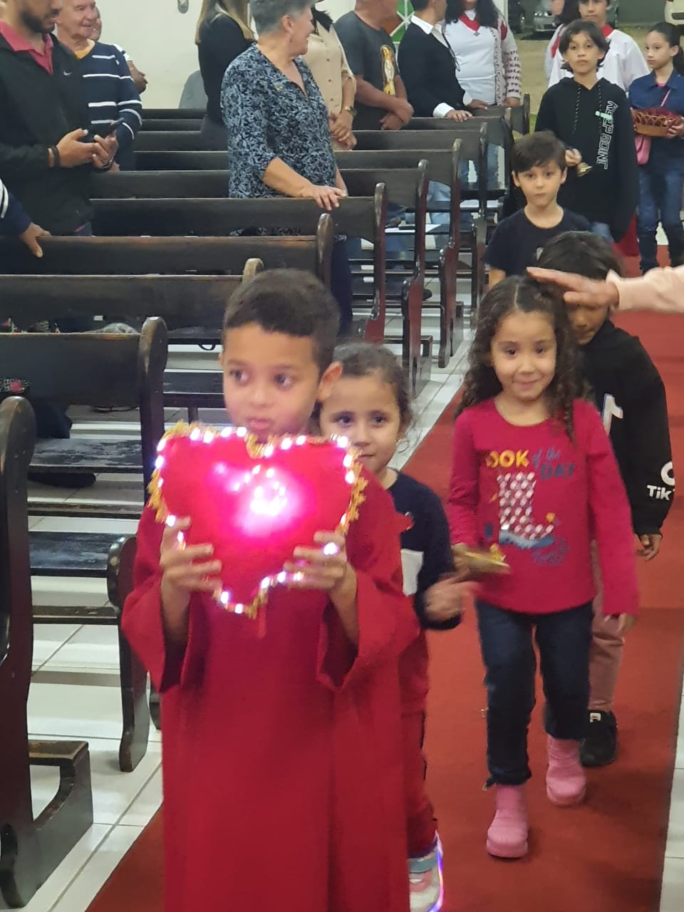 Na Festa do Sagrado Coração de Jesus, em 16/07/23, nos reunimos na Matriz em unidade com o Movimento do Apostolado da Oração que, nesta noite acolheu mais três membros que receberam a fita assumindo o seu propósito em um profundo momento de adoração ao Santíssimo Sacramento e celebração da Santa Missa Solene.